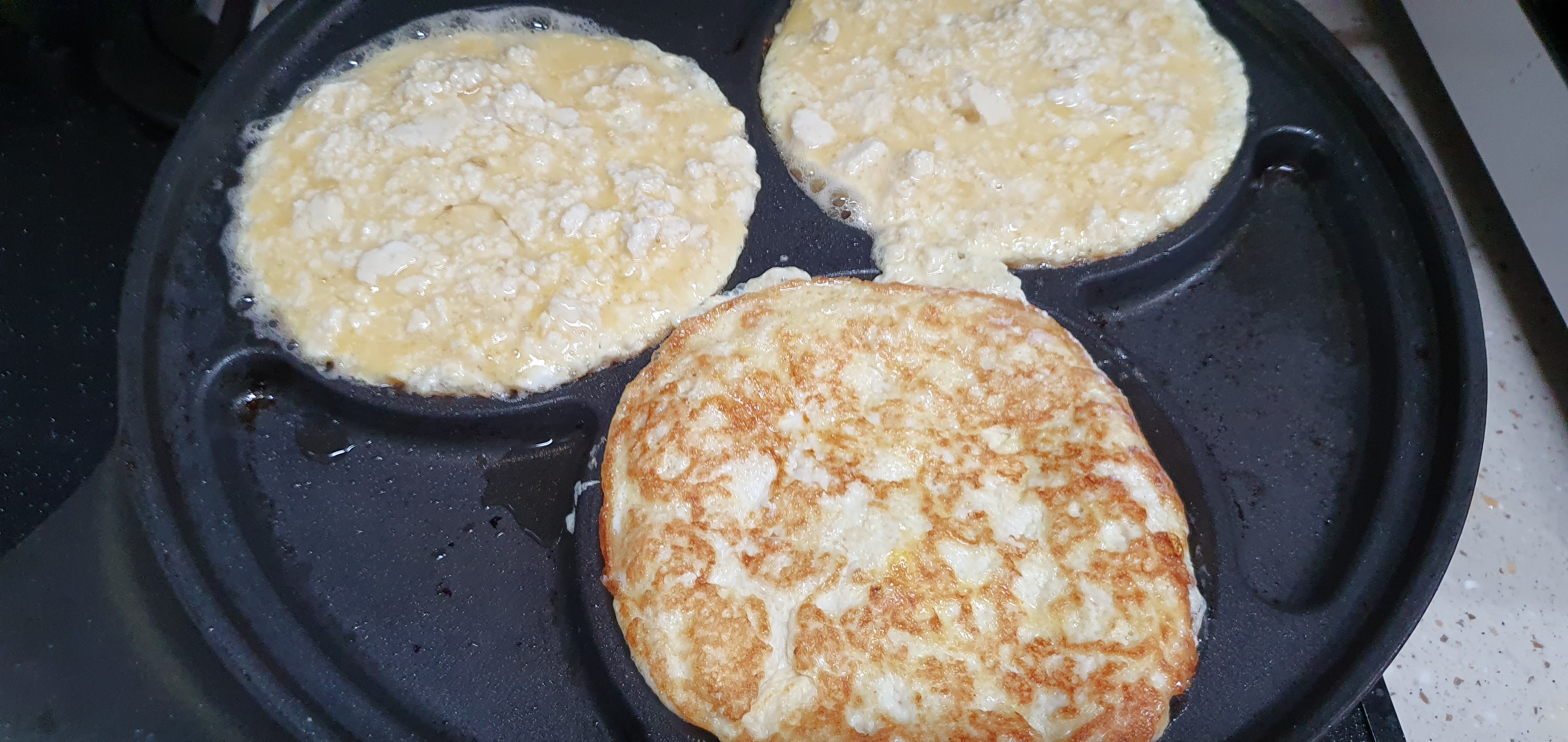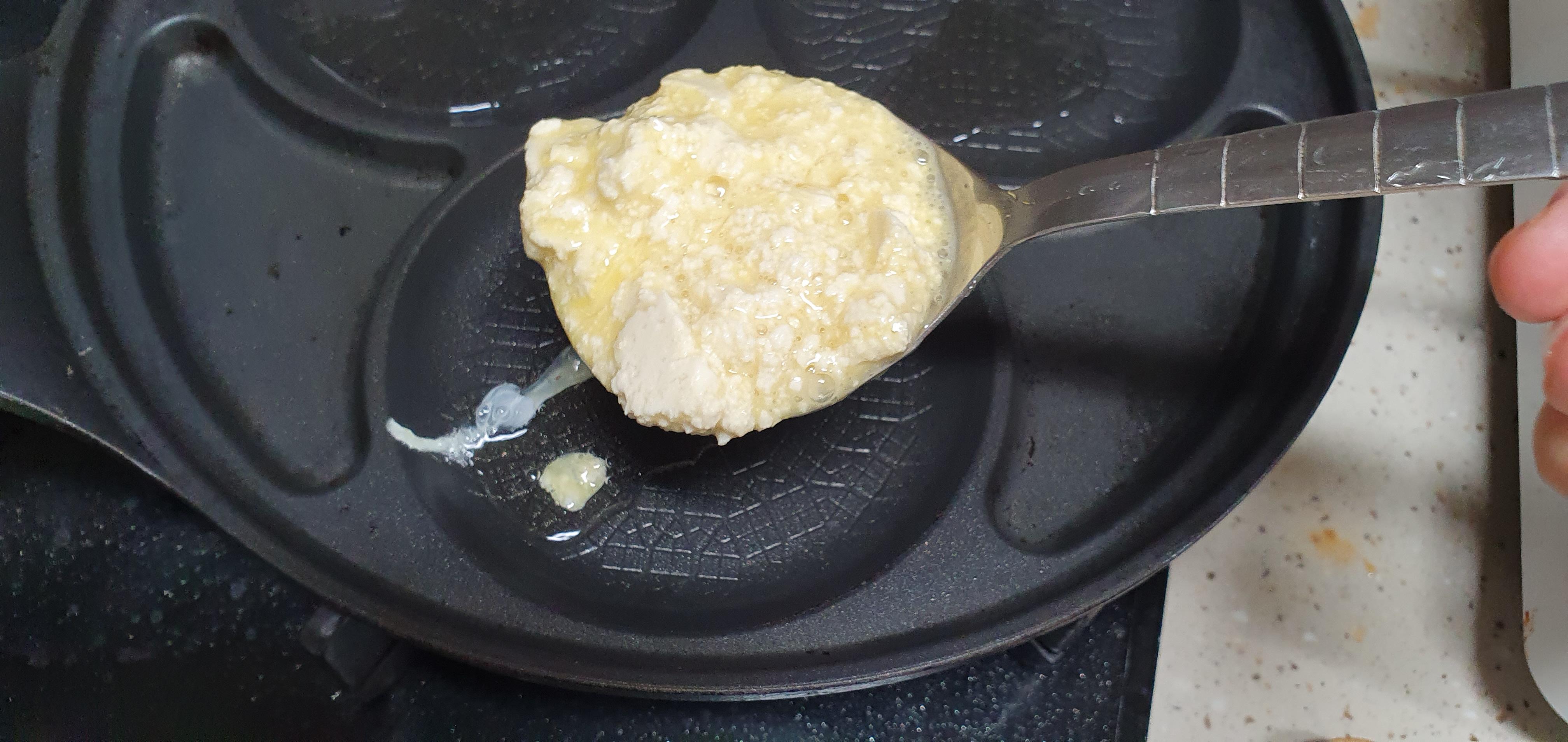 한 국자 떠서 프라이팬에 구워줍니다. 기름은 최소한 적게 넣고 구워줍니다..다이어터..ㅋ