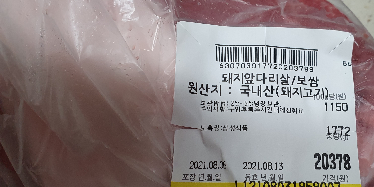 돼지 앞다리살 1.7kg( 약 3근)을 20,000 원돈에 사 왔다 덩어리로 두 덩어리였다.