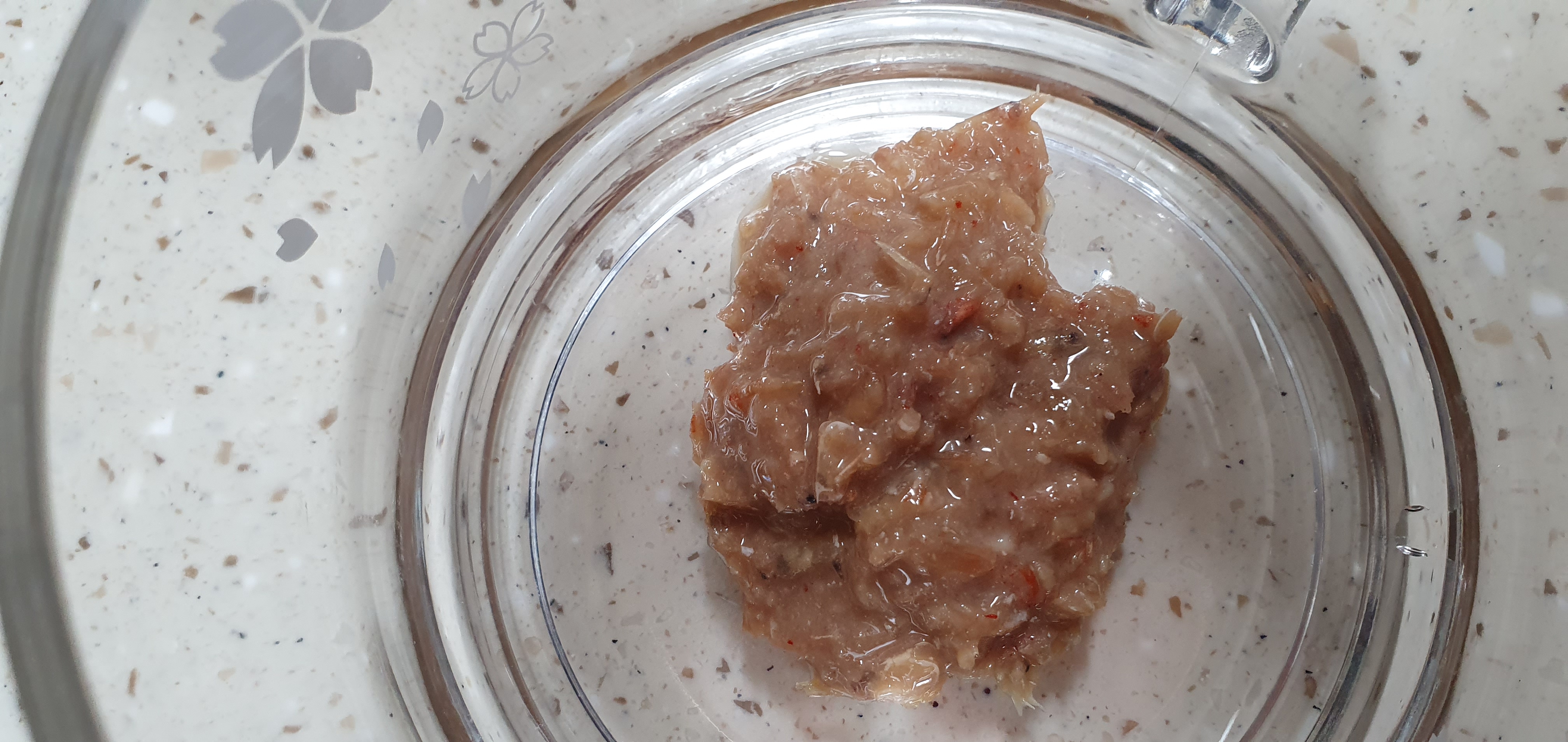 오래전에 담근 거라 새우 형태가 없다. 그래도 곰삭아 맛있다. 새우젓 한 큰 술로 시작한다.