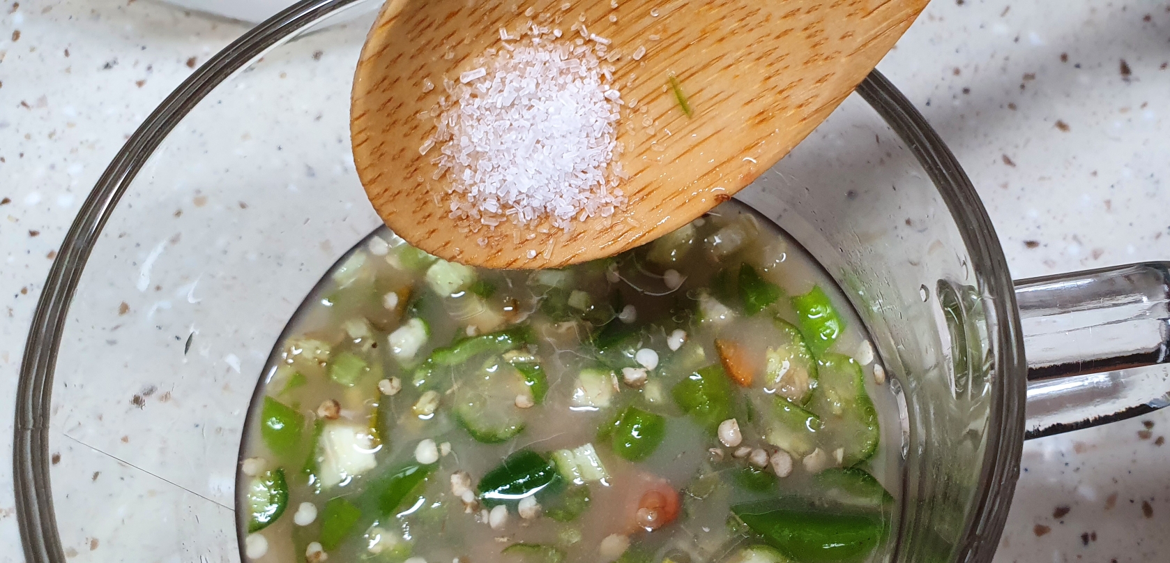 미원 조미료를 반티 스푼 섞는다. 이건 어차피 식당가도 이렇게 나온다. 가끔 먹는 새우젓에 이만큼의 조미료는 허락하자.